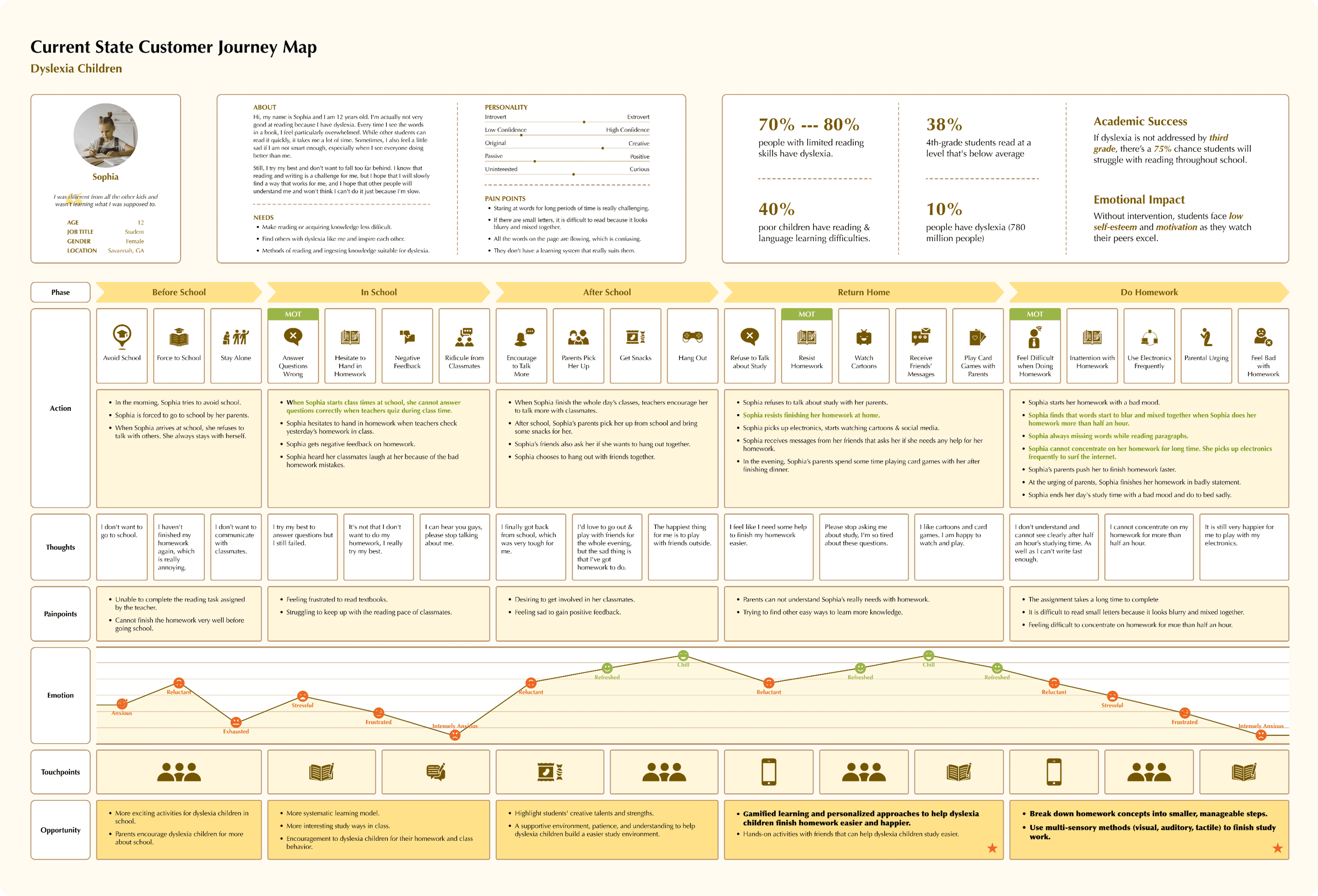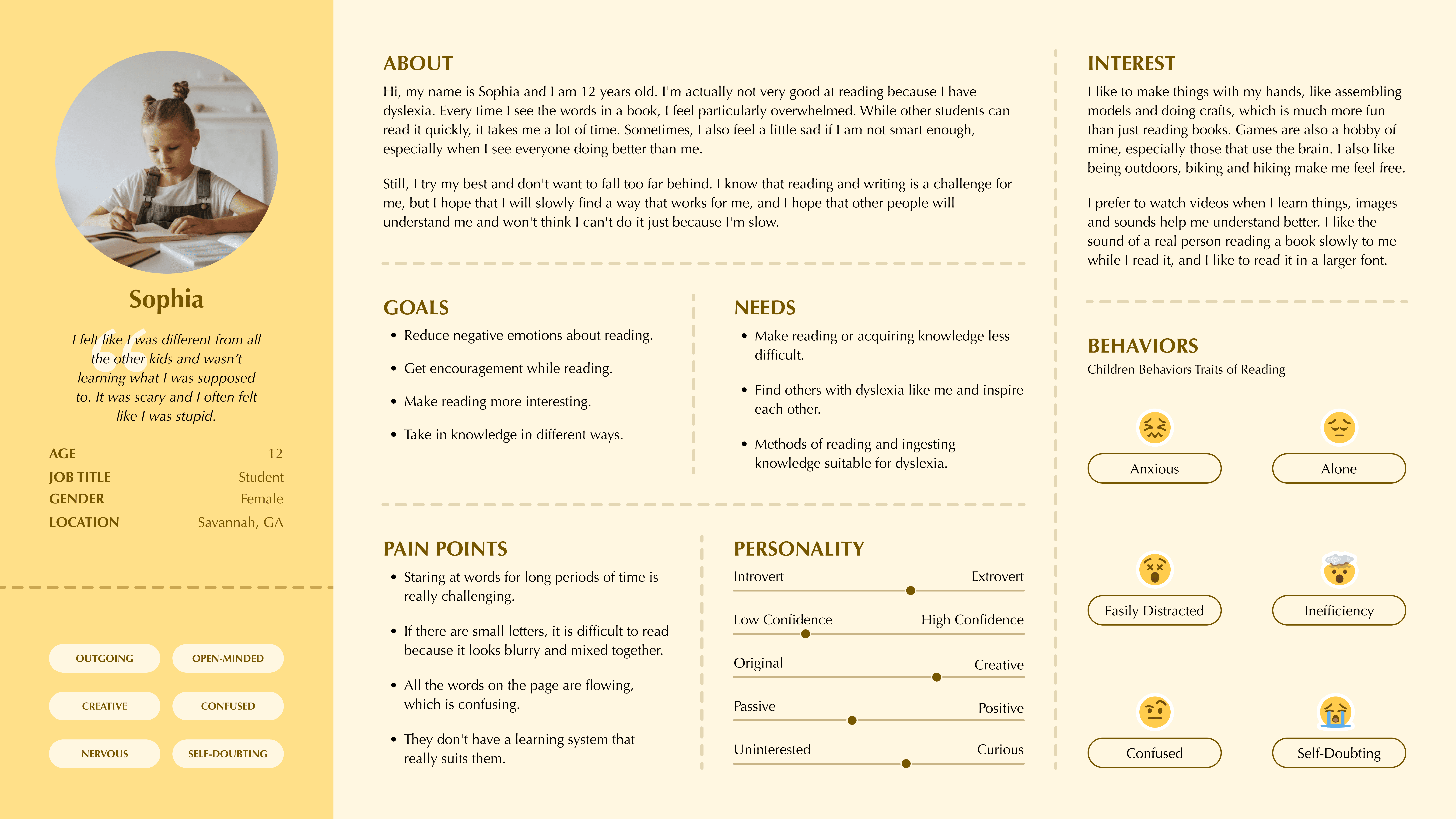 Developed a research framework to explore the learning challenges of children with dyslexia and identify design strategies that improve clarity, comprehension, and confidence in reading.