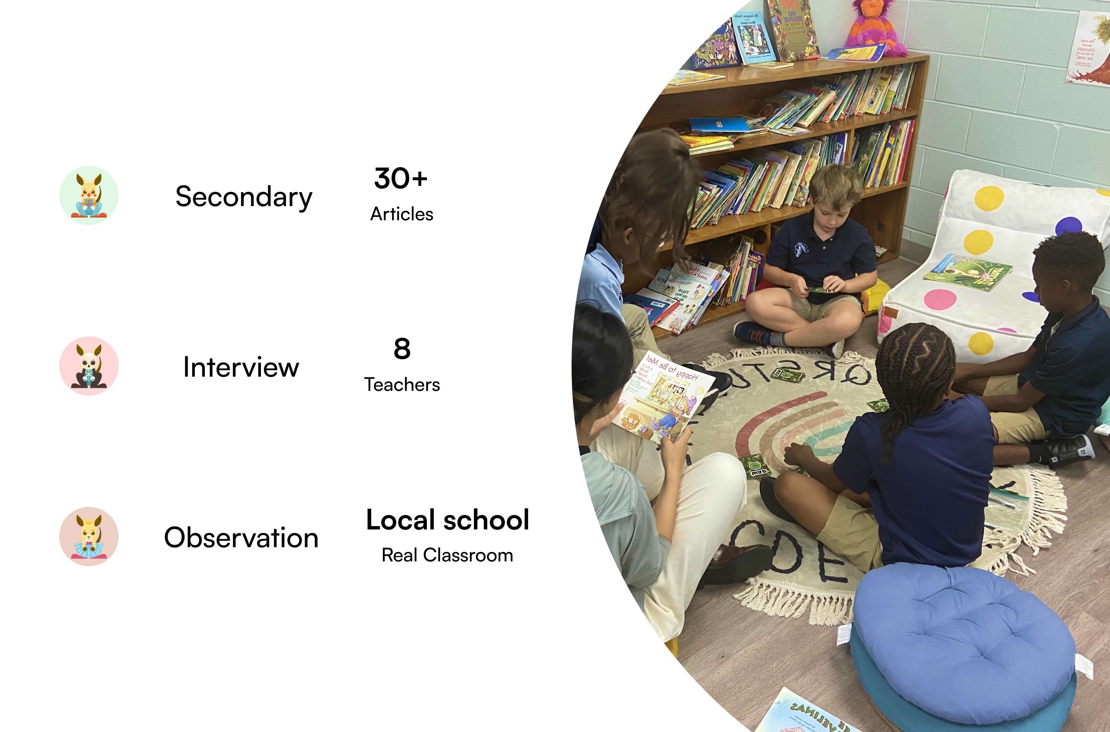 Contributed to user research on signs that a child might be struggling with dyslexia and tools or teaching methods teachers might use to help dyslexic children.