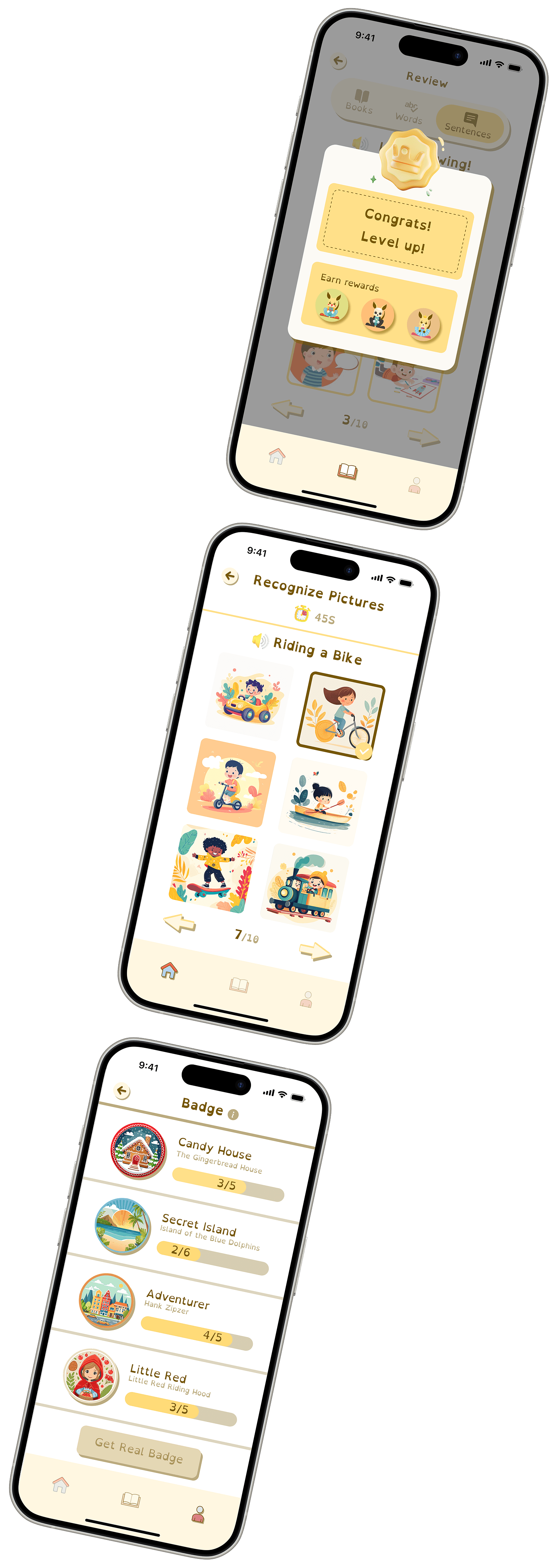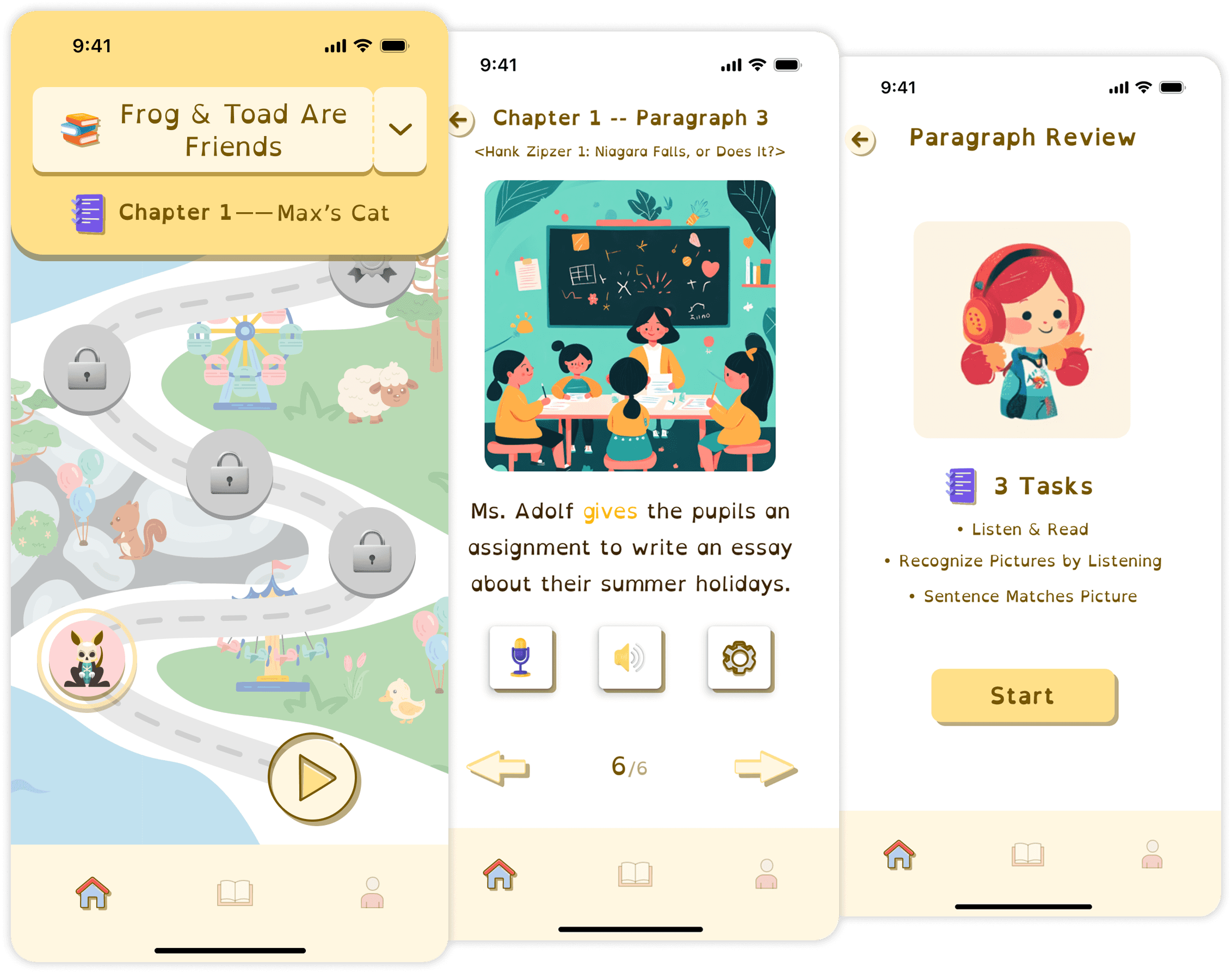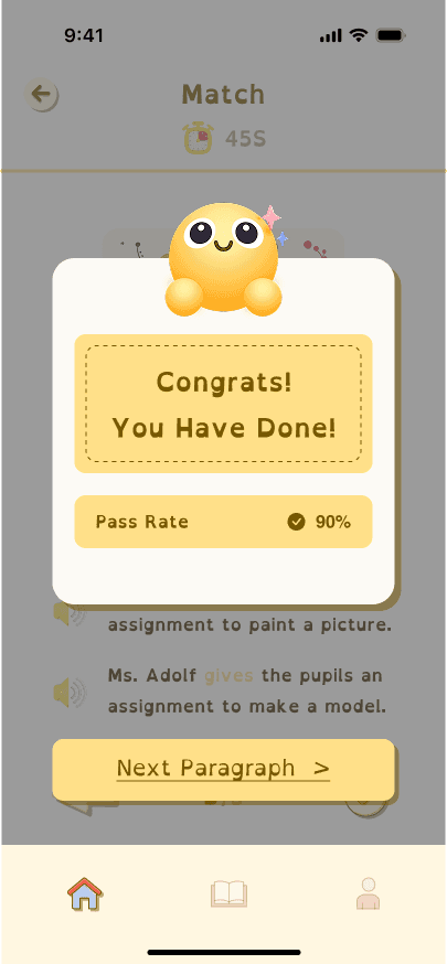 Contributed the main UI design, focusing on using engaging visuals to help dyslexic children stay motivated and feel confident.